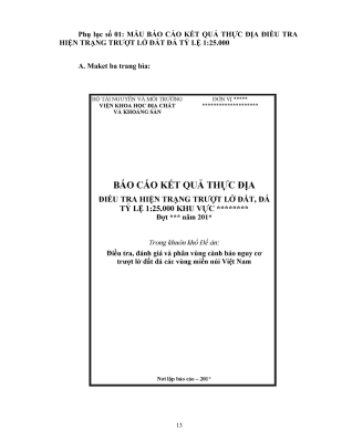 Quy định kỹ thuật công tác điều tra và thành lập bản đồ hiện trạng trượt lở đất đá các vùng miền núi Việt Nam tỷ lệ 1:25.000